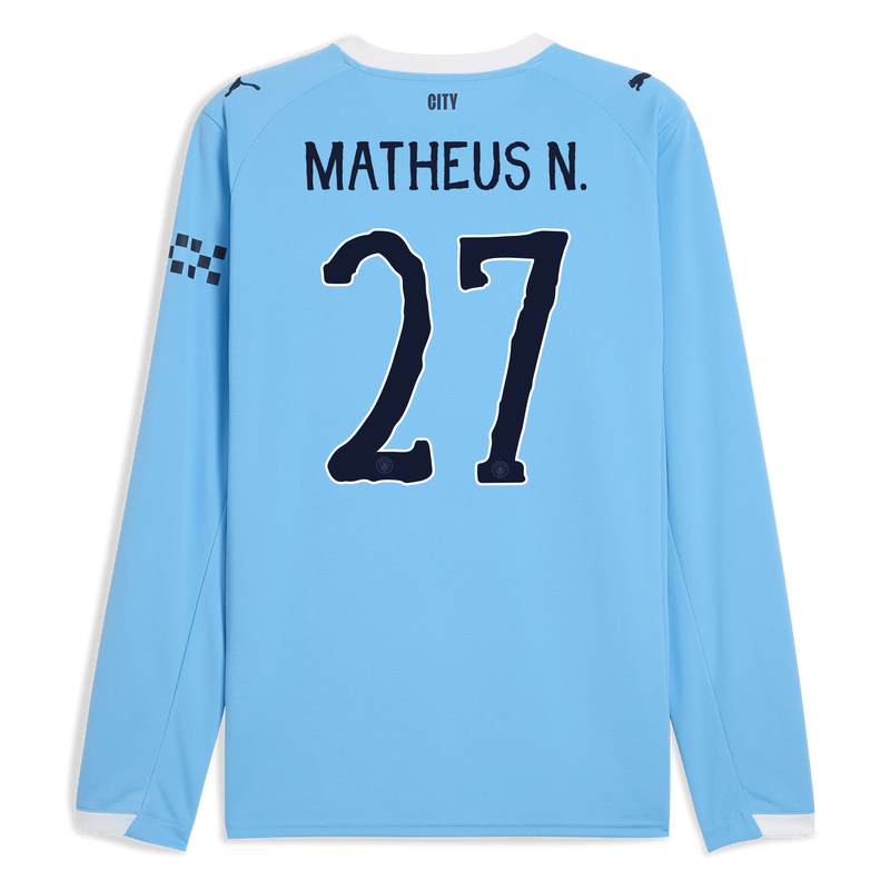 Manchester City Home Jersey 2025/26 Long Sleeve With MATHEUS N. 27 Printing