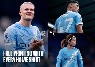 Add your favourite player or make it your own with free name and number printing on all home kits. Available in official Premier League, Man City, KidSuper, and Women’s Super League printing.